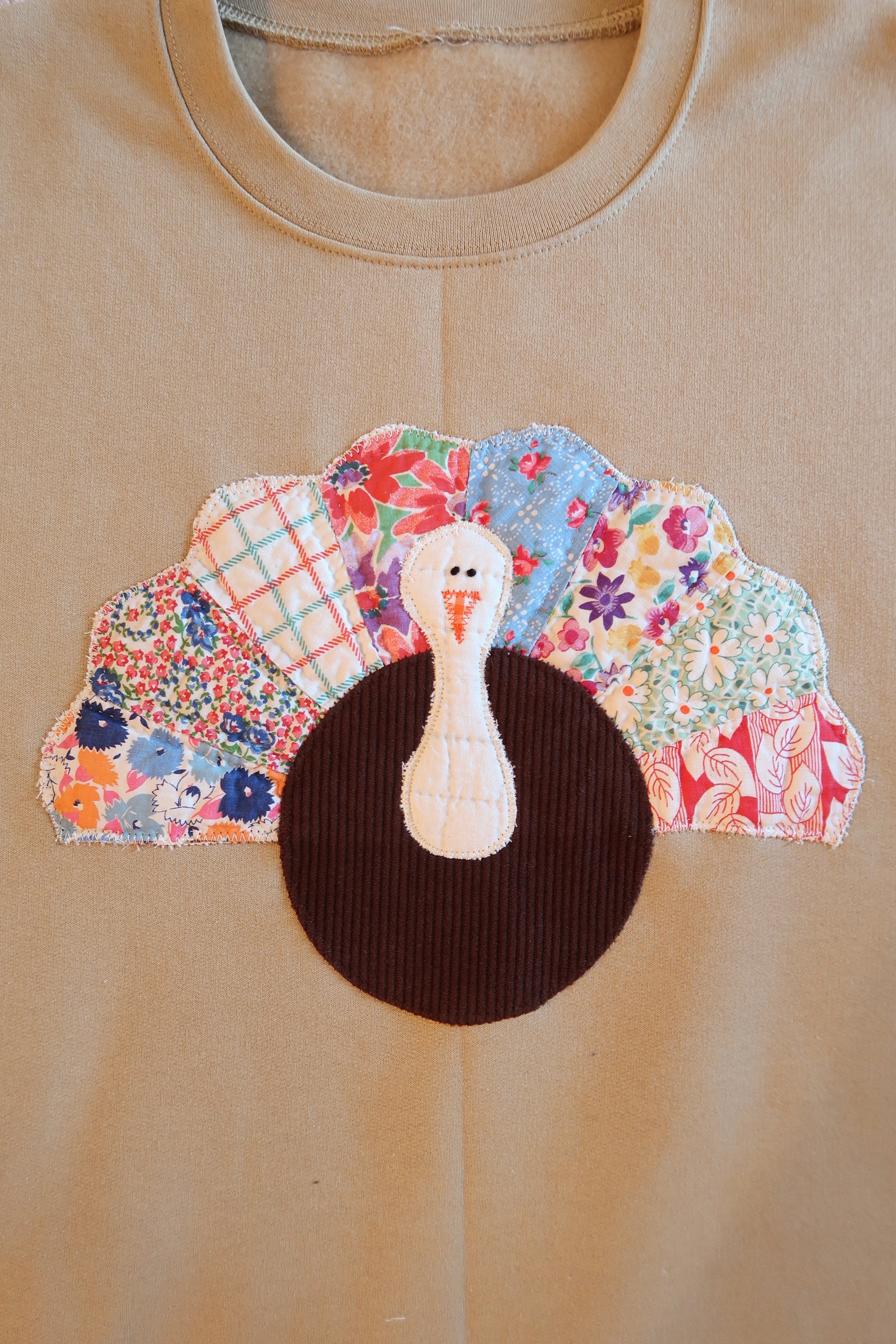 These quilted turkeys were handmade with so much love, giving every sweatshirt its own little personality. Perfect for a Thanksgiving feast, they’re cute, cozy, and roomy enough to eat way too much stuffing.