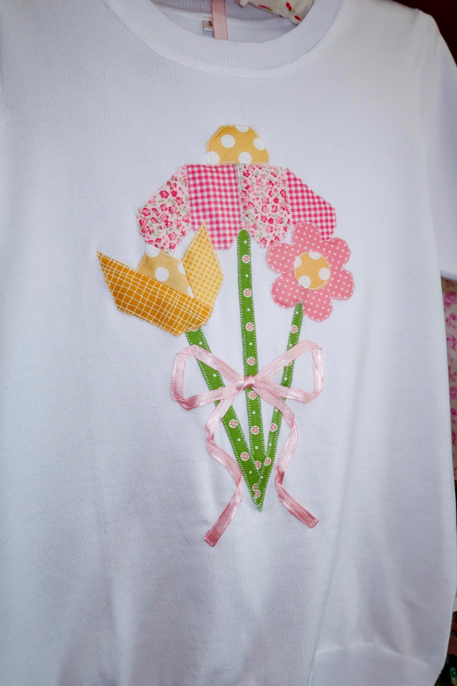 Short sleeve sweaters stitched bouquets! Each one is unique. These are the perfect gift for Mom (or yourself)!