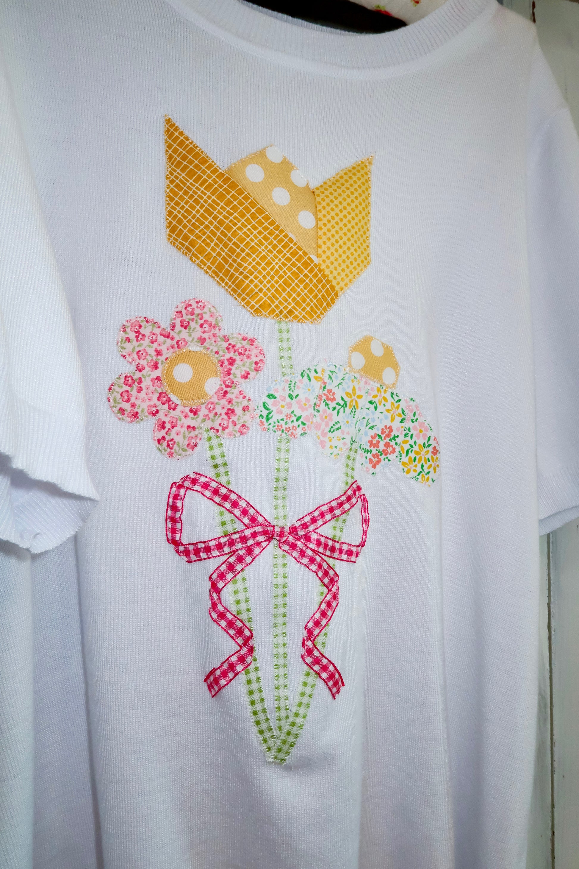 Short sleeve sweaters stitched bouquets! Each one is unique. These are the perfect gift for Mom (or yourself)!