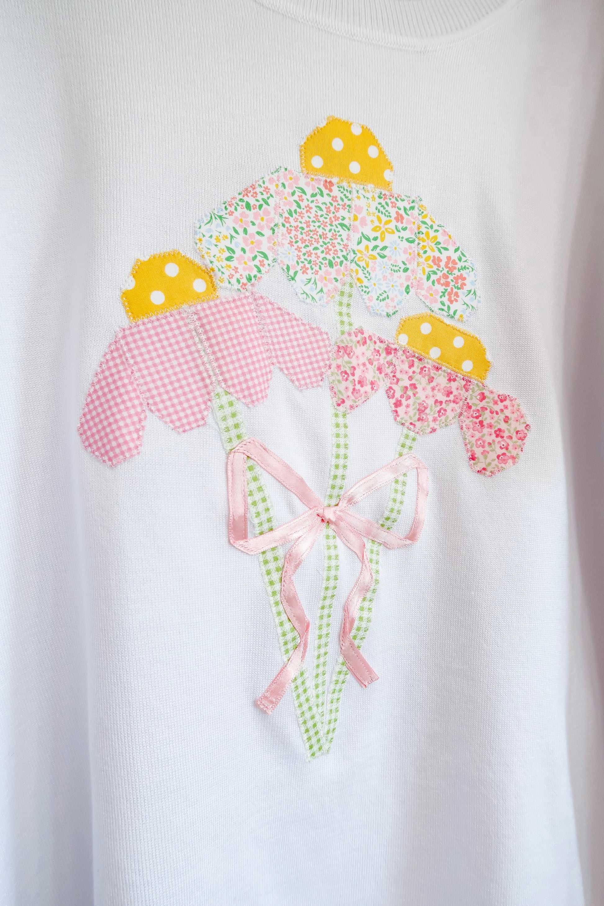 Short sleeve sweaters stitched bouquets! Each one is unique. These are the perfect gift for Mom (or yourself)!